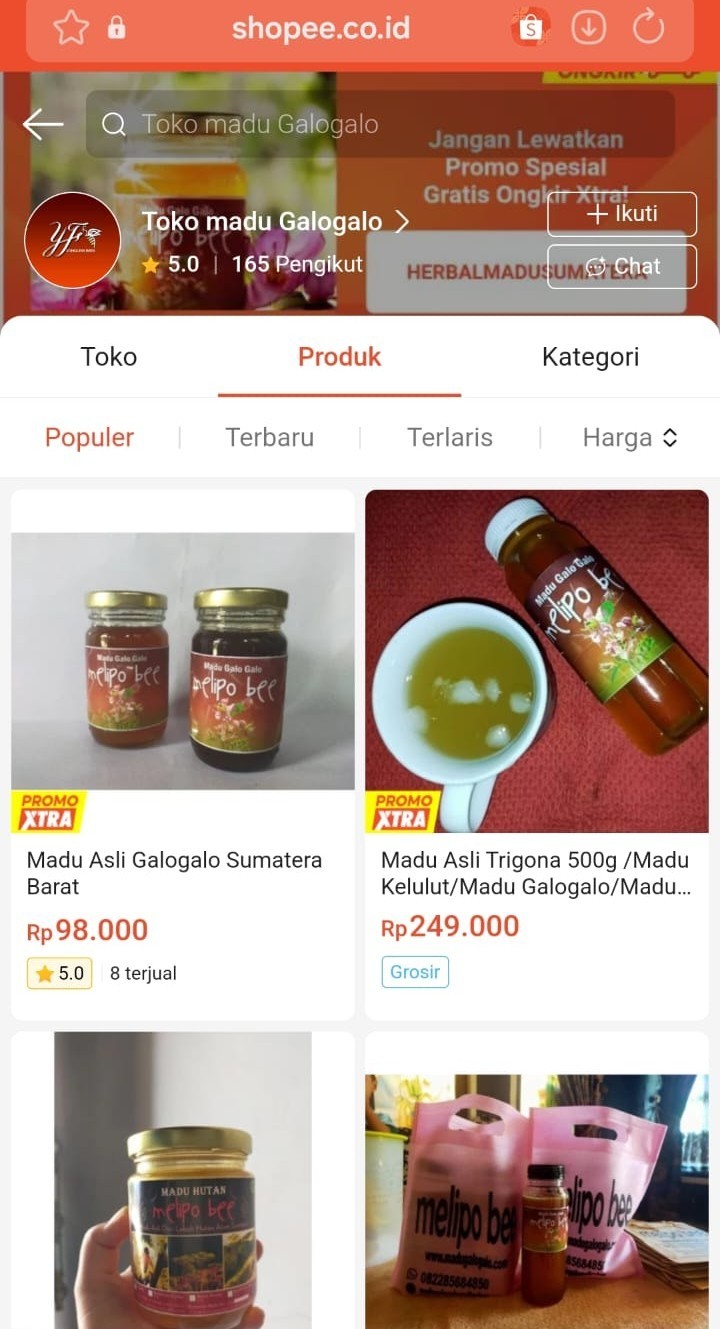 Salah satu Geoproduk Geopark Ranah Minang Silokek yakni Madu Galo-galo dan Madu Asli Hutan dikawasan Geopark Ranah Minang Silokek dan Bubuk Jahe Merah Instan CR2 yang sudah memasarkan Produknya di Market Place