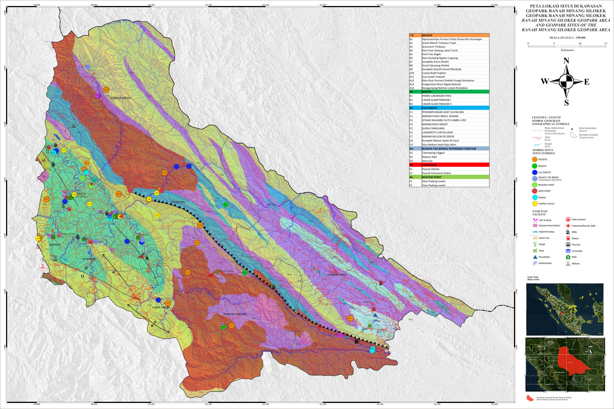 Untuk mengetahui sebaran situs geopark (Geosite, Biosite dan Culturesite) dapat dilihat pada peta berikut https://drive.google.com/file/d/1fDVmDRGeN-WMmxnN0qSRWtf-zqKTGcYe/view?usp=sharing
